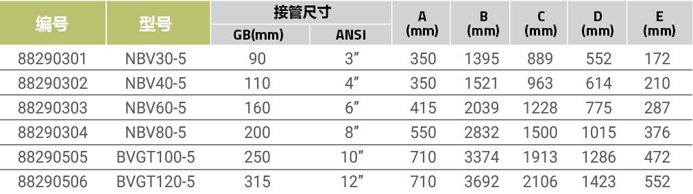 | NBV40-5 | 01151022 | 蝴蝶閥(英制4寸) | 5 |