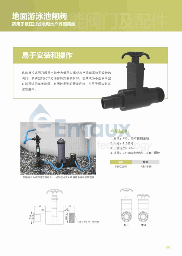 競技池這款推拉式閘刀閥是一款專為低壓過濾或水產(chǎn)養(yǎng)殖系統(tǒng)而設(shè)計(jì)的閥門。緊湊型的尺寸允許容易安裝和拆卸,使其成為小型或中型膠管道中。過濾系統(tǒng)的完美選擇,有兩種類型的管道連接,可用于添加到