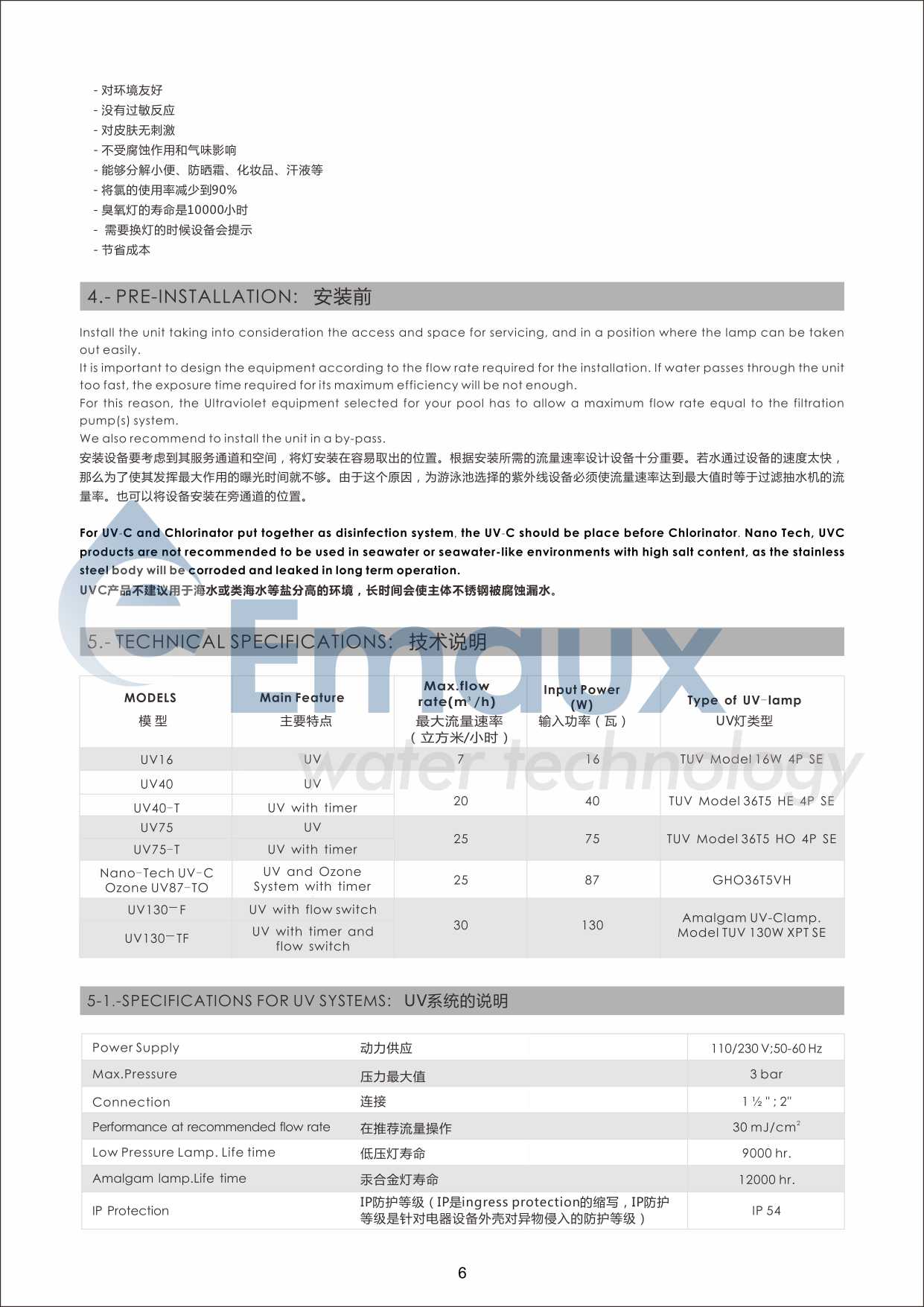 競(jìng)技池這款汞合金燈殺菌器能在低壓和中壓紫外線應(yīng)用之間運(yùn)行,在溫差大的范圍內(nèi)實(shí)現(xiàn)相對(duì)高的功率密度。 這版本包括一個(gè)流量開關(guān),當(dāng)水流低于要求時(shí),該開關(guān)將切斷燈的電源,以保護(hù)系統(tǒng)免受過熱的影響。 由于采用了特殊的涂層技術(shù),在溫差大的范圍內(nèi)能運(yùn)行12000小時(shí)后,運(yùn)行12000后建議更換紫外線燈管。計(jì)時(shí)器版本可作為選項(xiàng)提供。