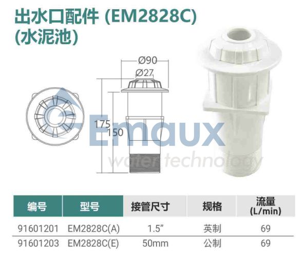 您的位置:首頁>產(chǎn)品概覽>吸污口配件>出水口配件 (EM2828C) (水泥池)