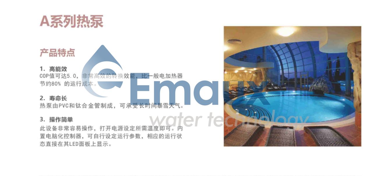 熱泵由PVC和鈦合金管制成,可承受長(zhǎng)時(shí)間暴雪天氣。